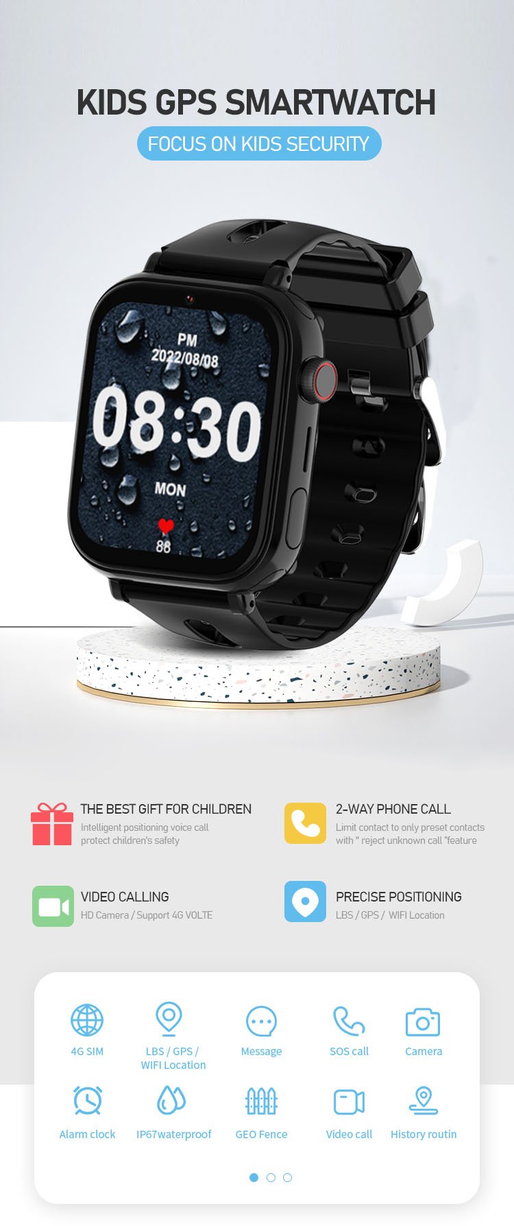 Tags: 4G, Camera, DND Mode, Geo Fencing, Historical Route, Kids, Remote Shutdown, Smartwatch, SOS Call, Sound Gurdian, Video Calling, Voice Message