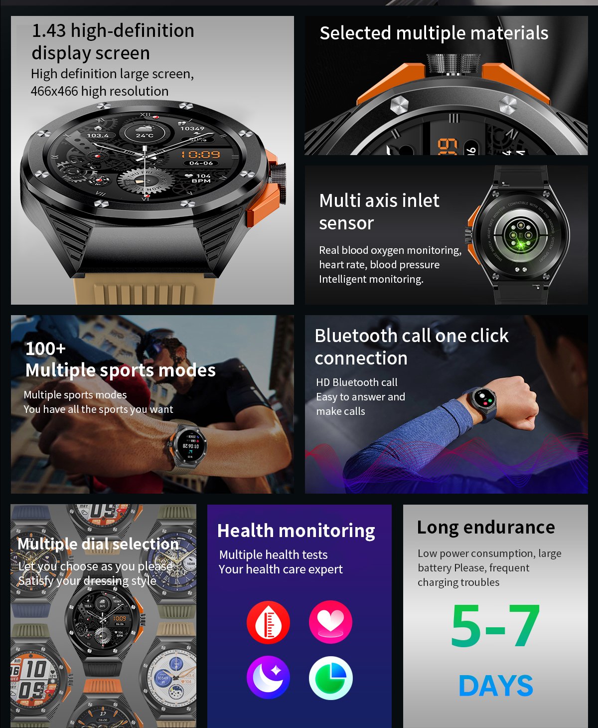 | Display | 1.43” AMOLED Screen, 466*466 Pixel |