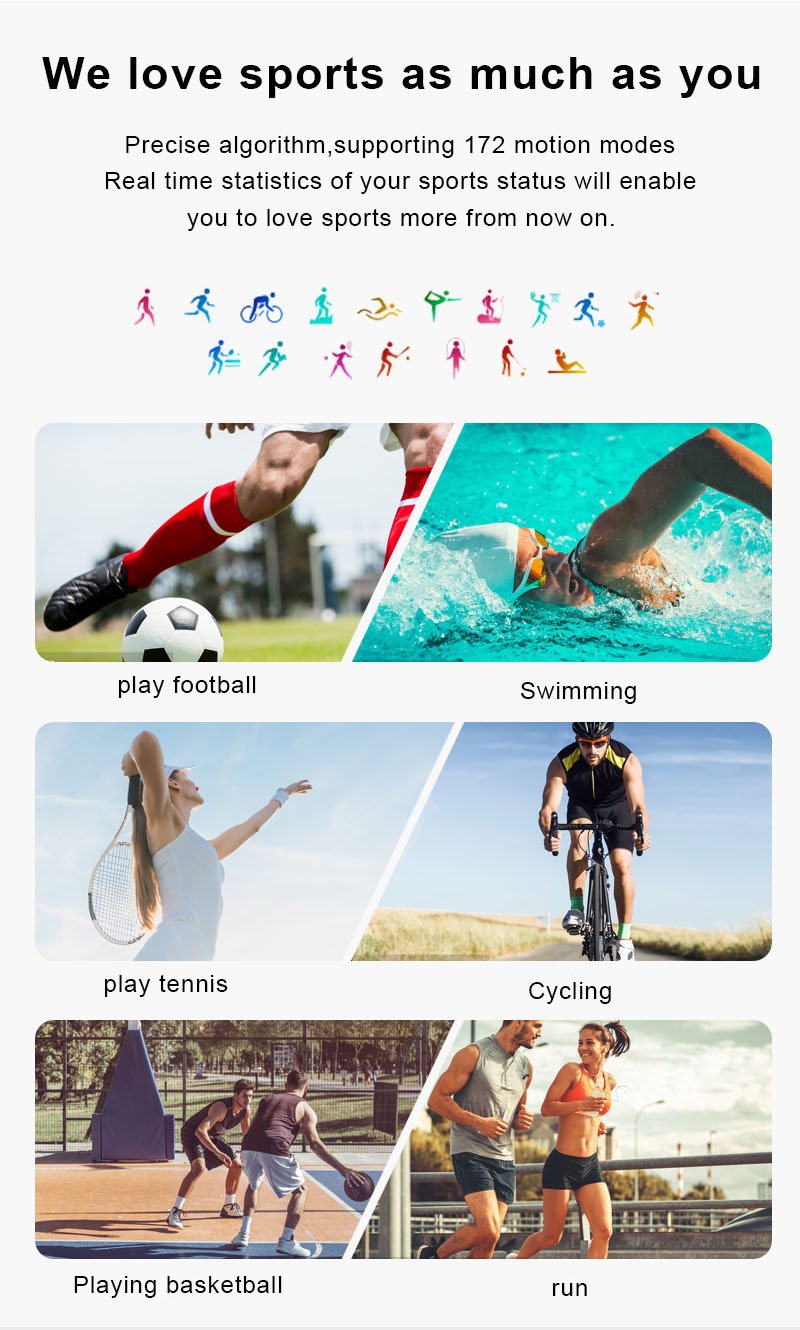 Sports FunctionsPedometer, Step Count, Mileage Recording, Calories Consumption, Multi-Sports Modes