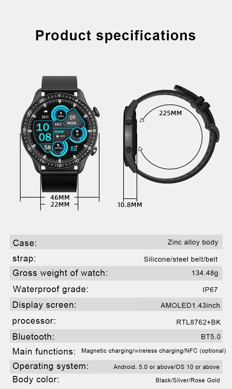 Fashionable AMOLED Exquisite Fitness Sports Smartwatch