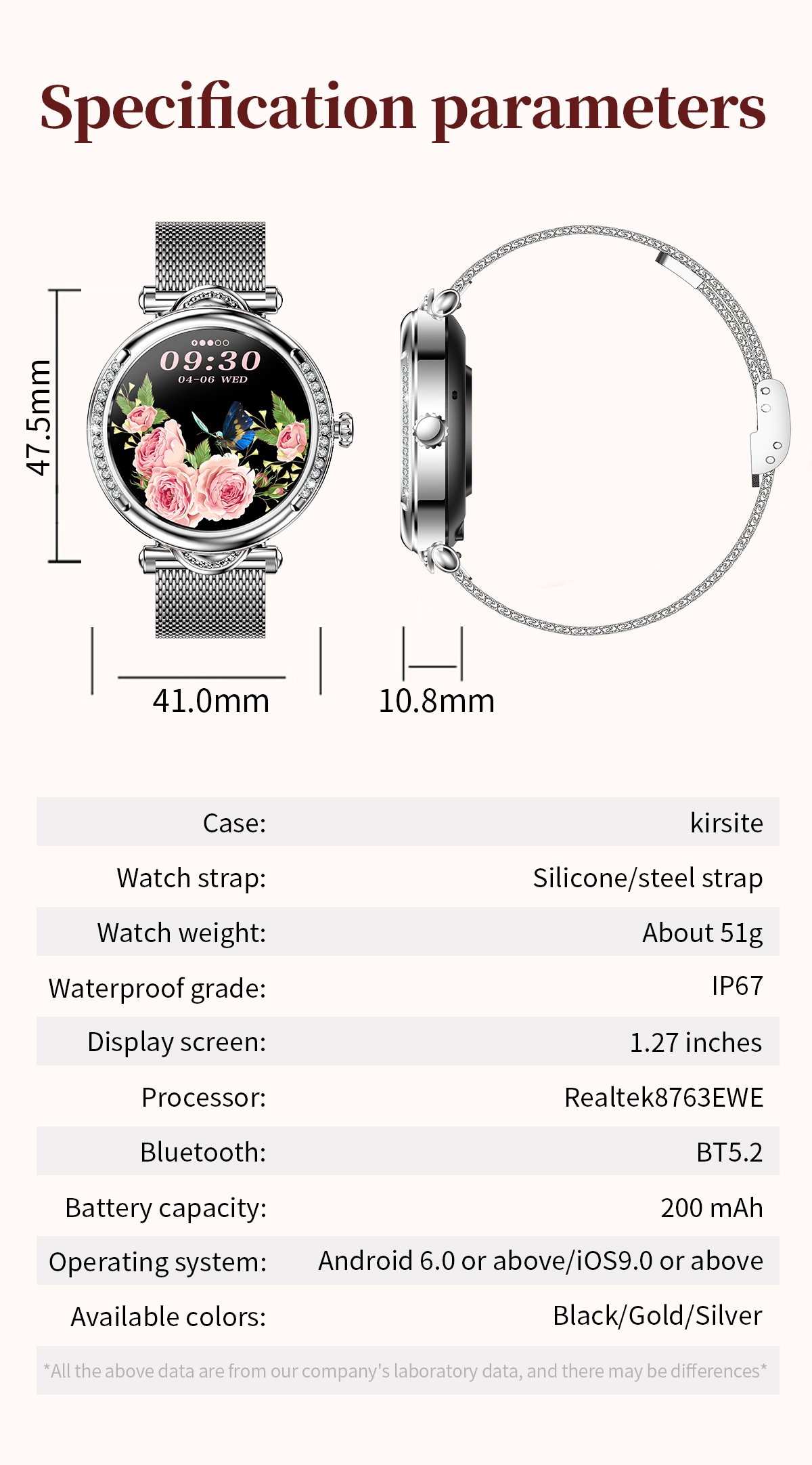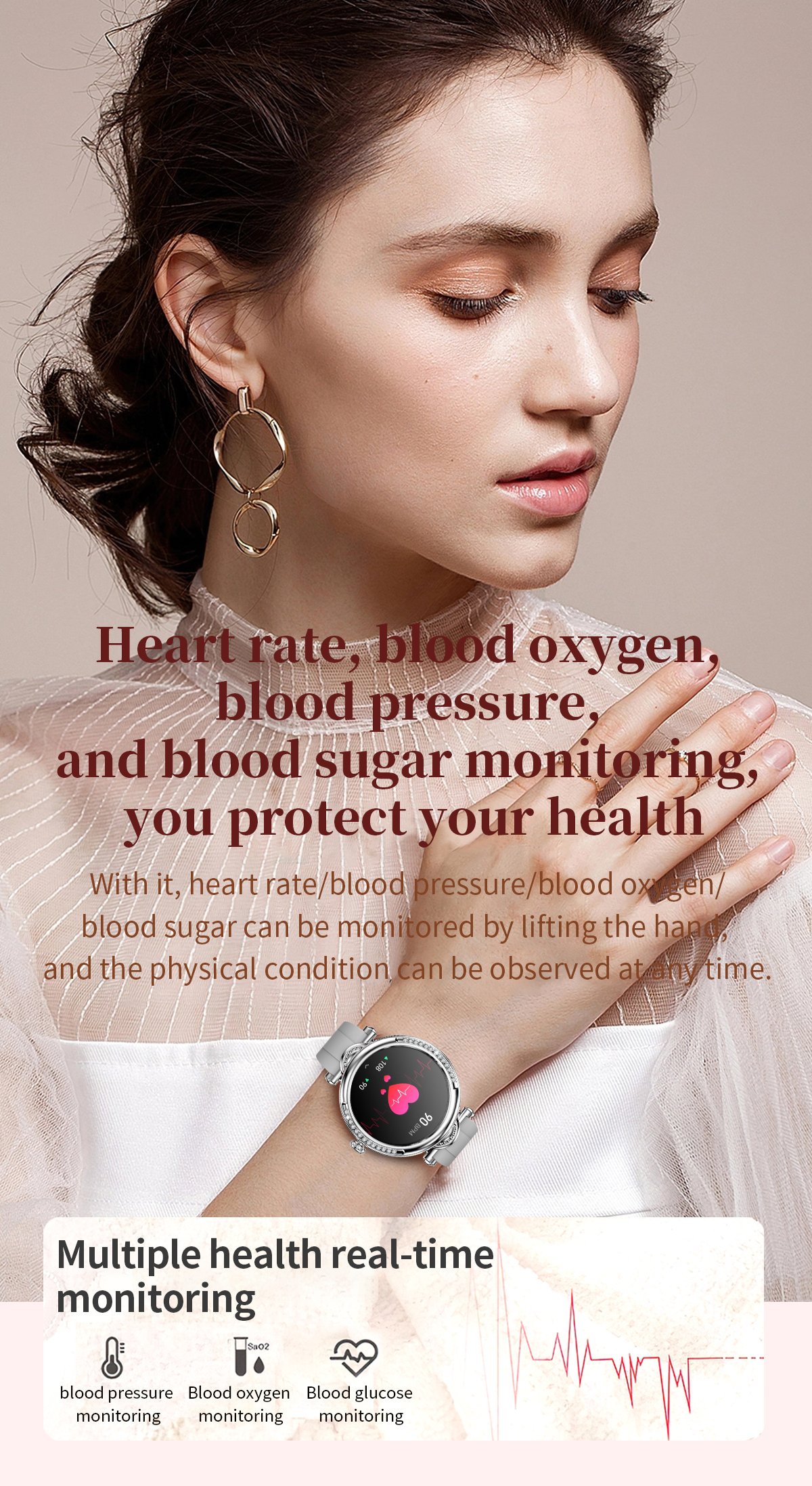 | Health Functions | Heart Rate, Blood Oxygen, Blood Pressure, Blood Sugar, Sleep Monitoring, Female Physiological alert |