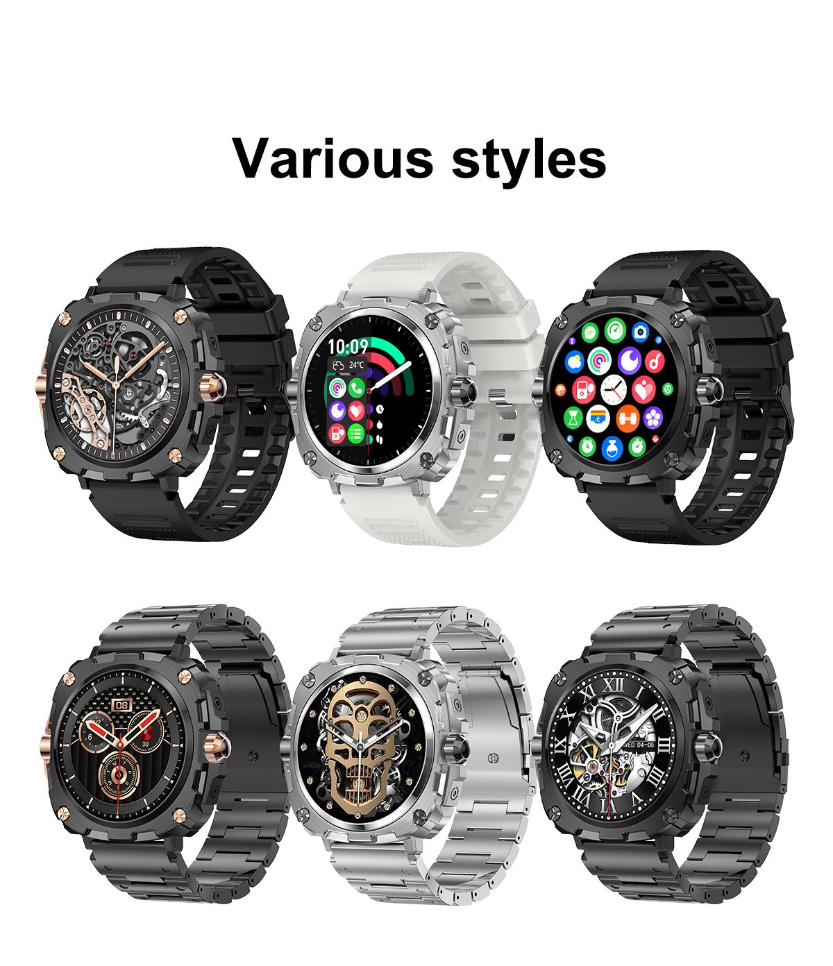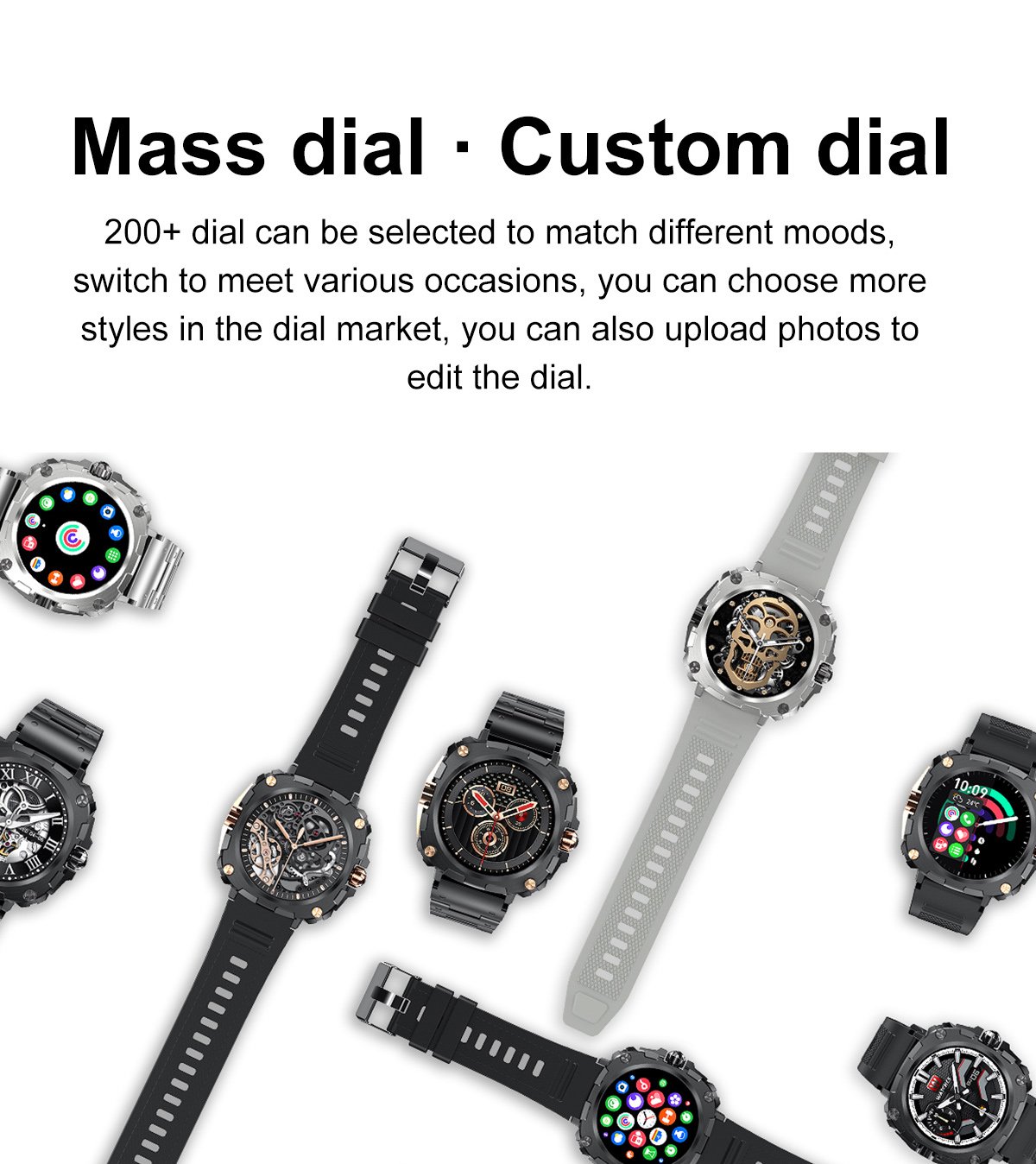 Basic FeaturesWorld Clock, Alarm, Stopwatch, Timer, Flashlight, Weather, Calculator, App Motion Curve, Watch Faces (200+)