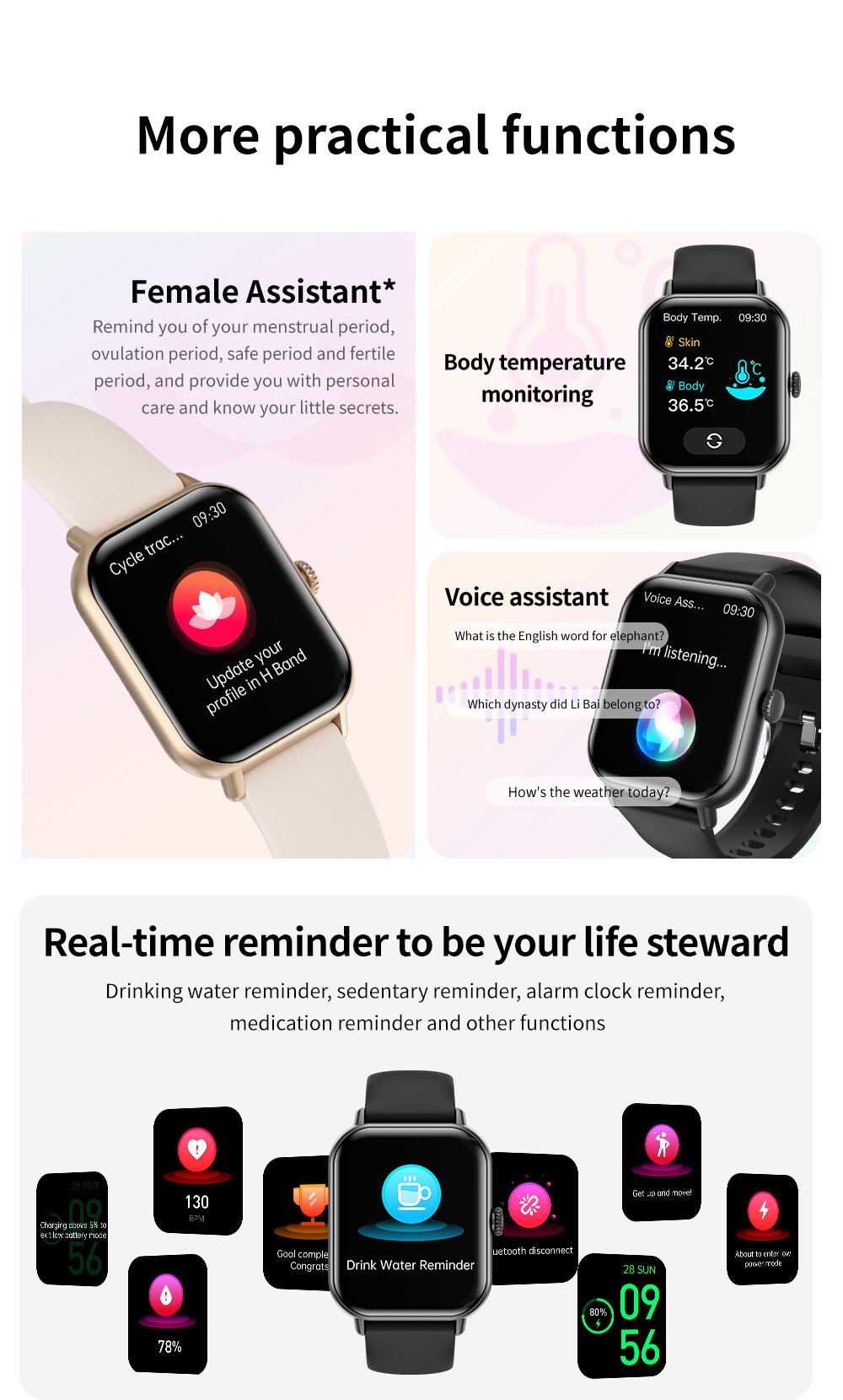 | Reminder Functions | Call Alert, Call Reject, Message Notification, Sedentary Reminder etc. |