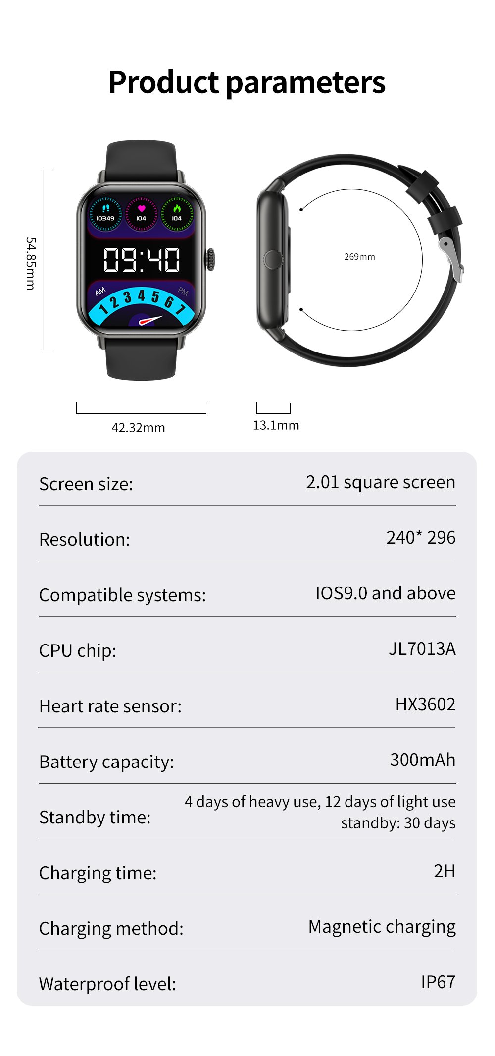 | Basic Features | World Clock, Alarm, Stopwatch, Timer, Flashlight, Weather, Calculator, App Motion Curve, Watch Faces, DND Mode, Encoder menu, Game |