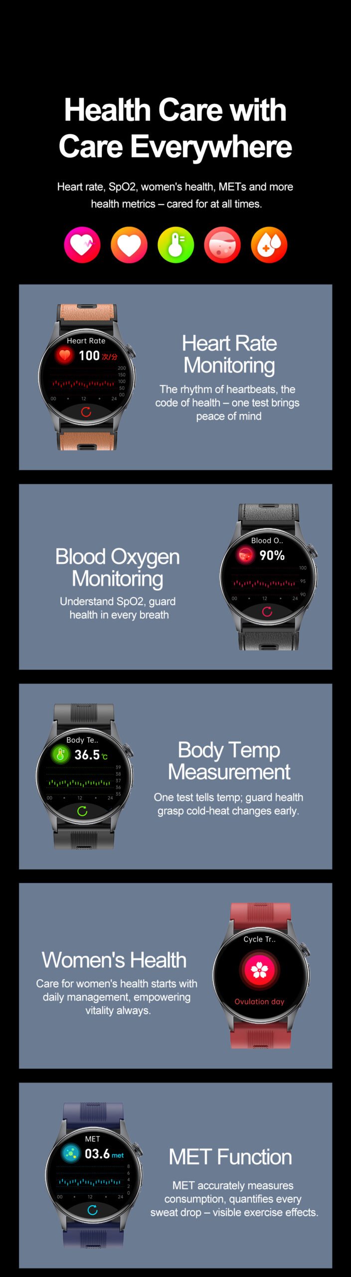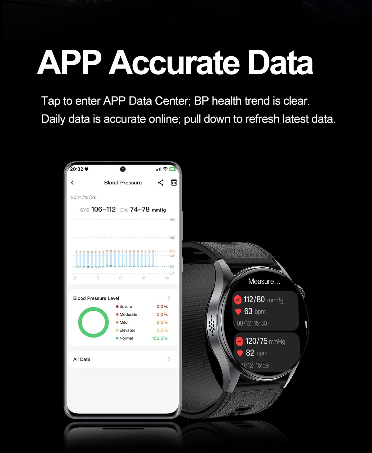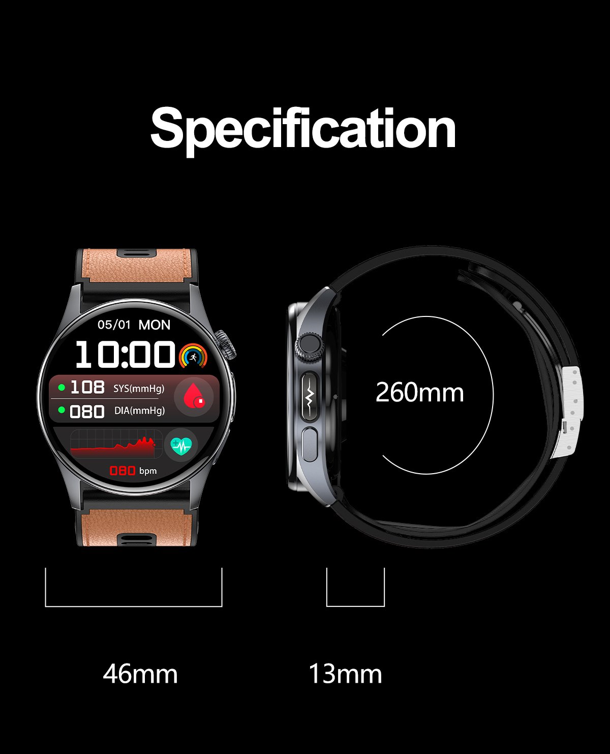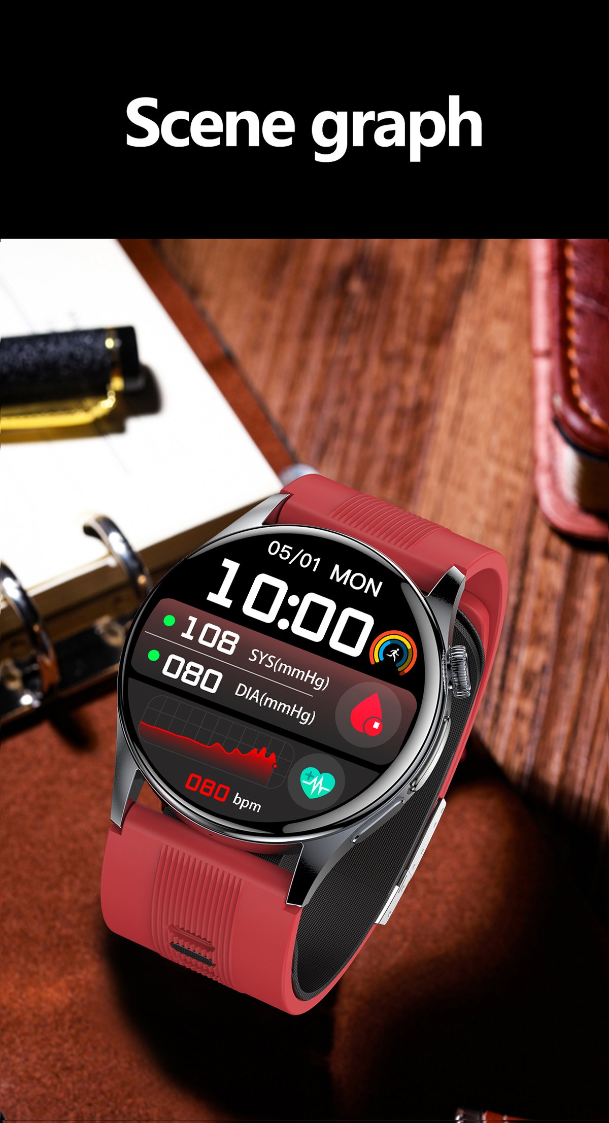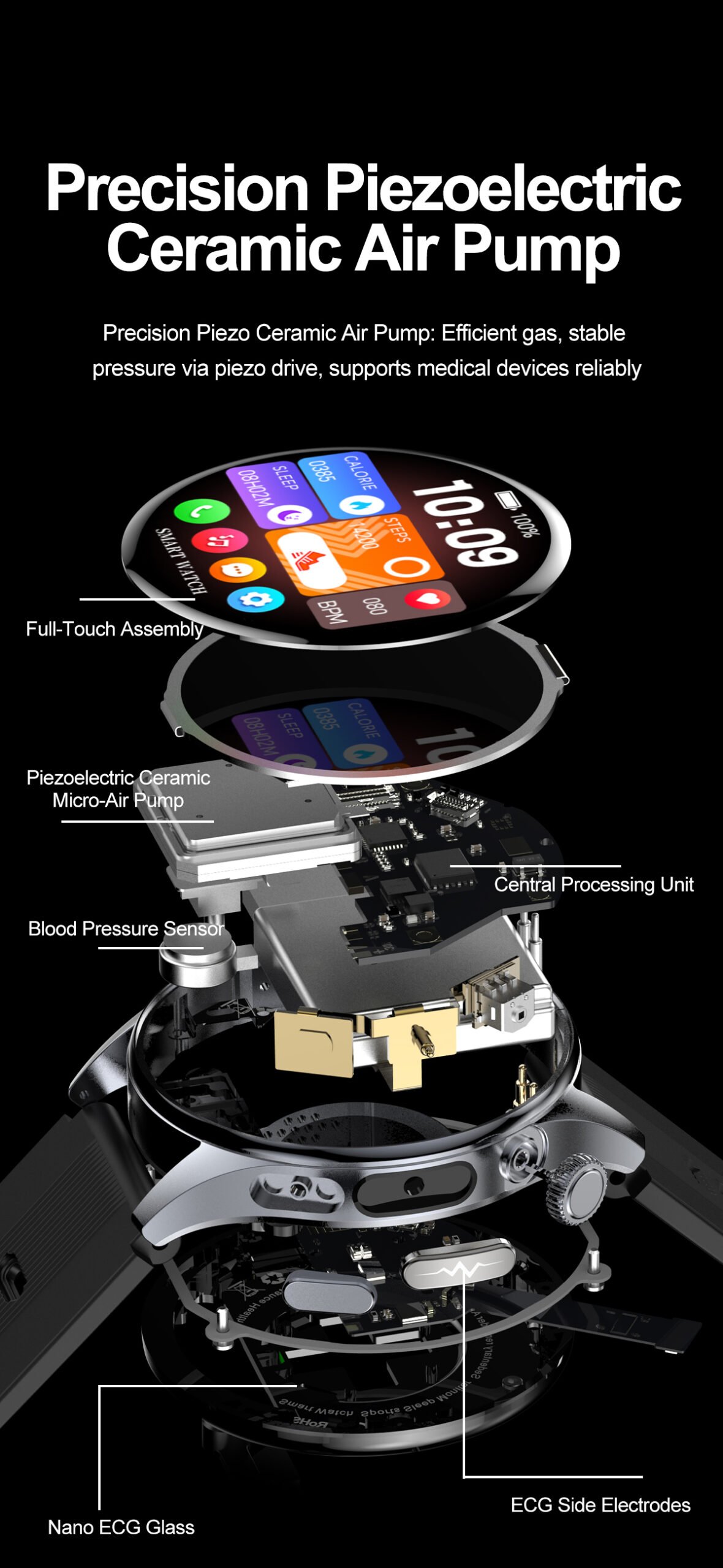 Airbag Blood Pressure, ECG, Elderly, Fitness, Health, Smart Watch, Stylish