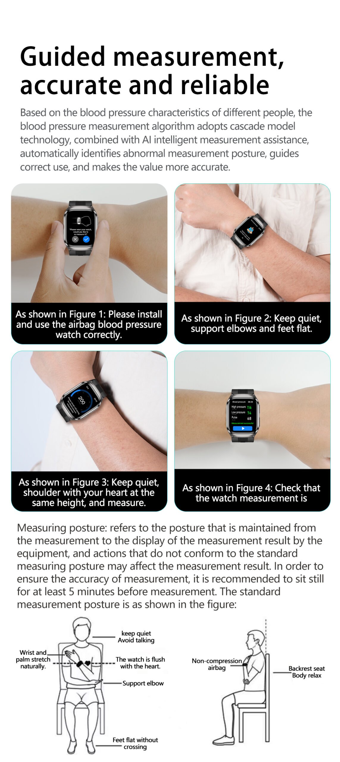 Airbag Blood Pressure, ECG, Elderly, Fitness, Health, Smart Watch, Stylish