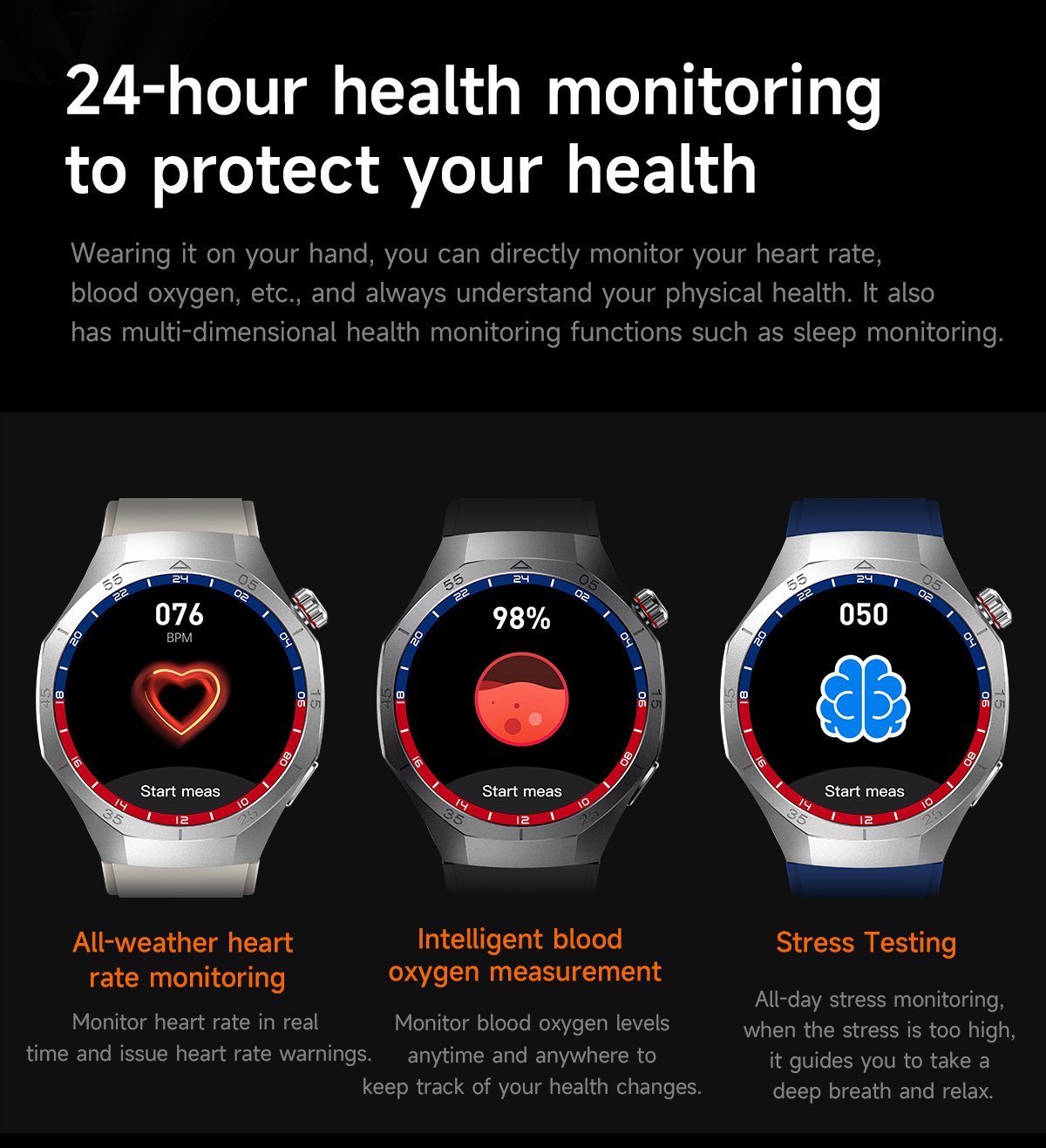 Health FunctionsECG, Heart Rate, Blood Oxygen, Blood Pressure, Blood Temperature, Sleep Monitoring, Breathing Exercise