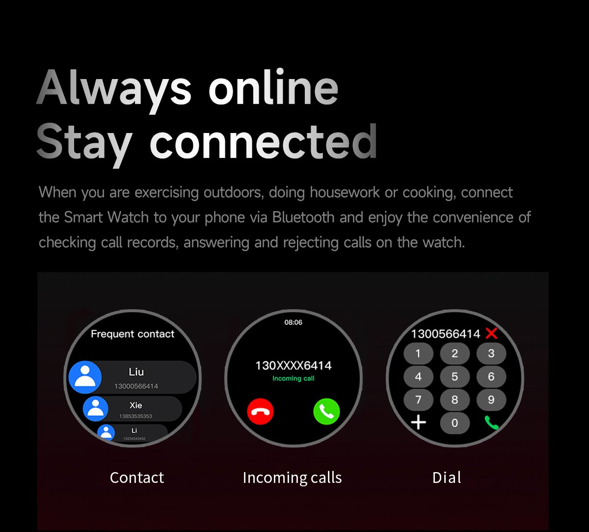 Reminder FunctionsCall Alert, Call Reject, Message Notification, Sedentary Reminder etc.